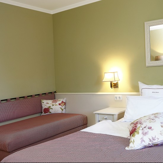 Unsere insgesamt 13 Doppelzimmer Blesius Garten sind im gehobenen Landhausstil eingerichtet. Die großzügigen und individuell eingerichteten Zimmer beinhalten eine gemütliche Sitzgelegenheit. Diese Zimmerkategorie gibt es auf allen drei Etagen des Hauses, wobei der Fahrstuhl nur bis zur 2. Etage geht. Zwei unserer Blesius Garten Zimmer können auch als Familienzimmer genutzt werden mit Zugang zu einem Einzelzimmer mit Queen-Size-Bett (nur auf Nachfrage buchbar).